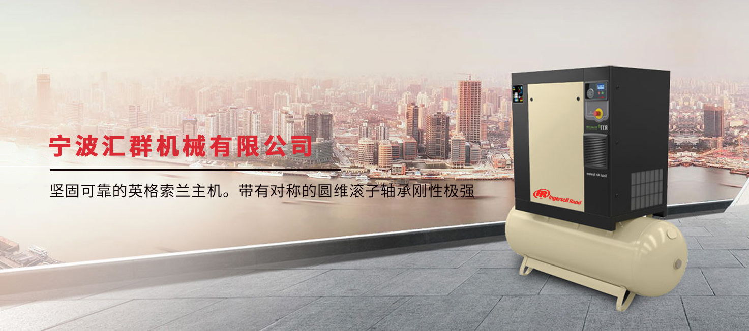 <meta name="description" content="宁波汇群机械有限公司，坐落于宁波市，是美国英格索兰空压机浙江授权代理商，公司经营范围：螺杆空压机、离心式空压机、无油螺杆空压机，中高压活塞机，吹瓶空压机，冷干机、储气罐、真空泵和罗茨风机，以及热能回收系统，管道的设计及安装，空压机节能评估及改造。